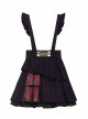Idol.Q Series SK Striped Double Pleated Hem Patchwork Check Fabric Metal Double-Breasted Trim Classic Lolita Long Strap Dress