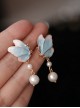 Imitation Burnt Blue Porcelain Chinese Style Butterfly Pearls Pendant Cheongsam Classic Lolita Stud Earrings