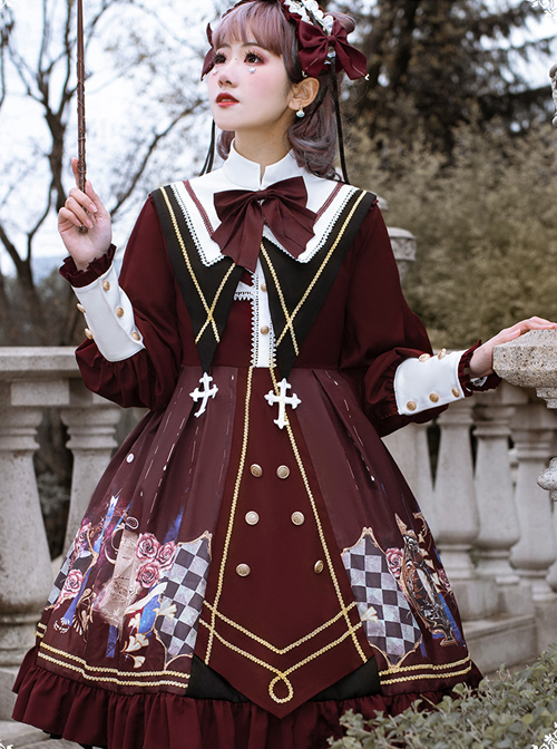 Immortal Bottle Series OP Retro School Lolita Long Sleeve Dress