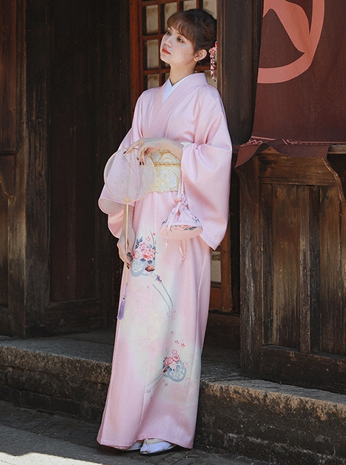 Japanese Style Simple Chrysanthemum Print Elegant Daily Cute Pink Bathrobe Kawaii Fashion Improved Kimono