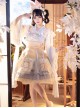 Laurel Prayer Series Chinese Style Cute Rabbit Print Lace Ruffle Skirt Bowknot Decoration Ribbon Sweet Lolita Sleeveless Dress Set