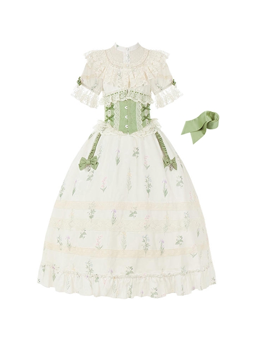 Light Green Fresh Lace Edward Collar Elegant Spring Campanula Phalaenopsis Print Imperial Dress Classic Lolita Dress