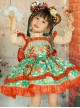 Little Bear Christmas Print Lace Sleeveless Dress Apricot Stand Collar Knit Long Sleeve Top Classic Lolita Kids Dress Set