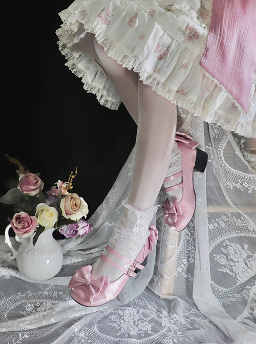 Little Kate Series Cute Mercerized Satin Lacquered Sweet Cat Ears Bowknot Lolita Round Toe Low Heel Shoes