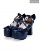 Dark Blue Bowknot Round-toe Sweet Lolita High Heel Shoes