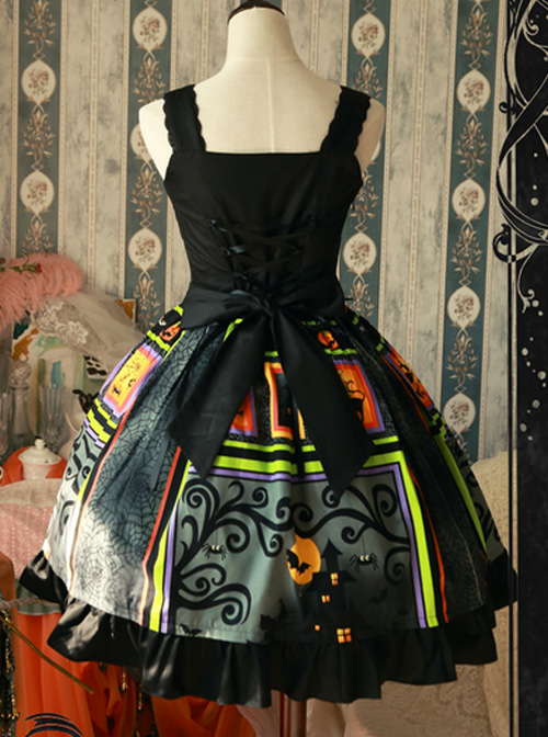 Magic Tea Party Black Spider Web Witch Castle Halloween Gothic Lolita Sling Dress