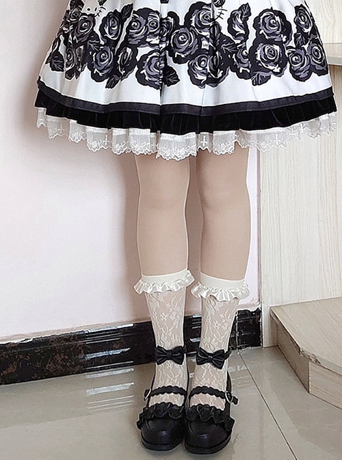 Merulu Series Japanese Style Daily Versatile Lace Ruffles Flower Trim Bowknot Girl Cute Sweet Lolita Shoes