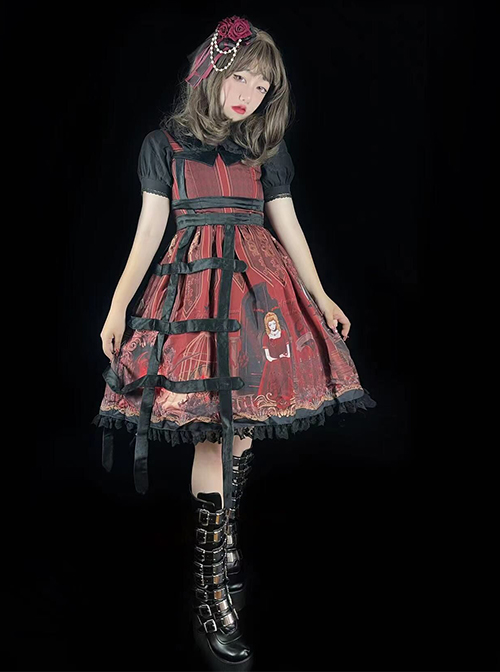 Midnight Magic Series Gothic Style Graphic Print Decoration Personalized Pendant Cloth Strip Lolita Slip Dress