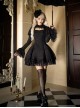 This Midnight Whisper Series Gothic Lolita dress features a vintage spring style with a hollow chest design and bubble sleeves. Elegant black lace patchwork and attached sleeves complete this beautiful and unique dress.