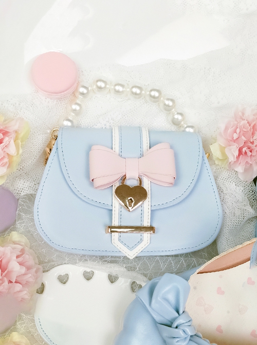 Milk Core Series Daily Commute Gentle Cute Love Metal Buckle Bowknot Pearl Chain Sweet Lolita JK Uniform Soft Girl Bag