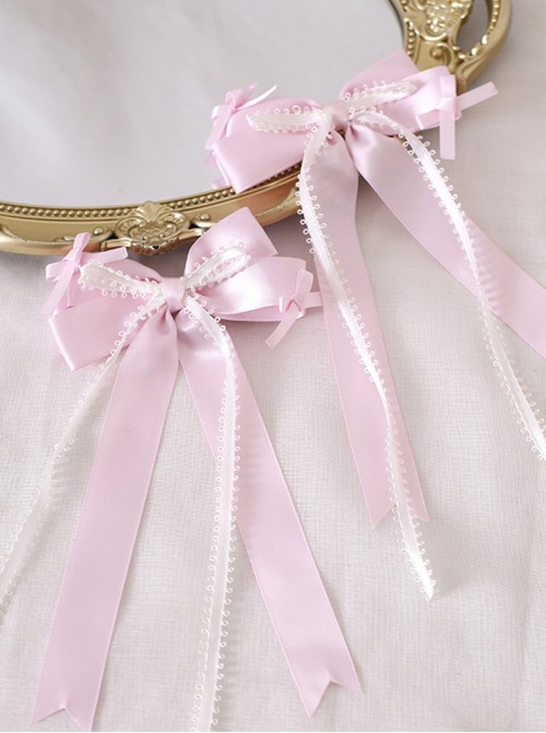 A sweet Lolita hairpin with a pink lace bowknot, exuding elegance and a ballet aesthetic. Minimalist yet charming, it's a daily essential for adding a touch of sweetness to your hairstyle.