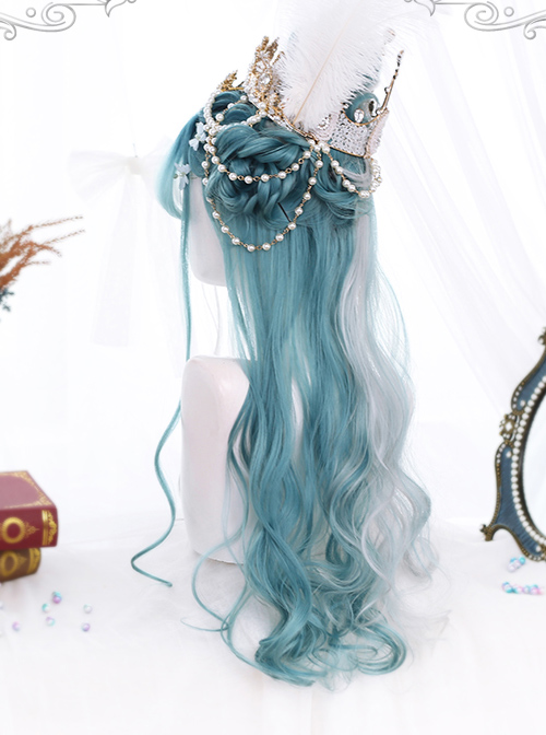 Mint Color And Gray Natural Gradient Long Curly Hair Classic Lolita Wigs