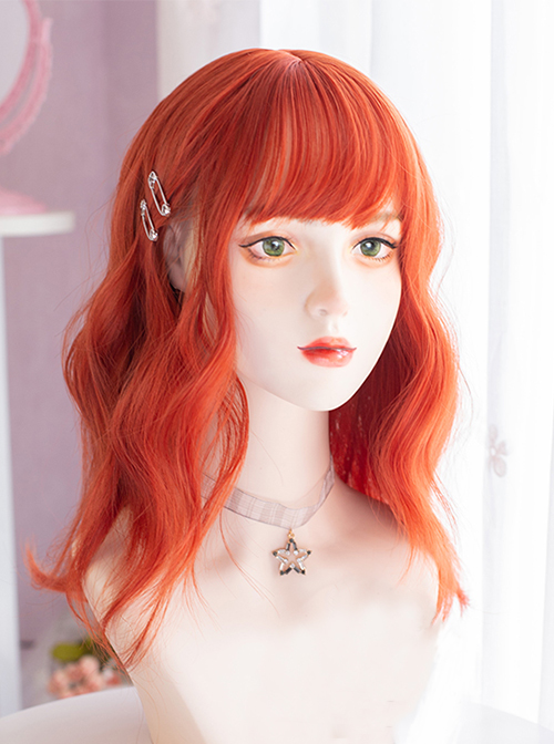 Orange Air Bangs Wavy Roll Medium And Long Hair Lolita Wigs