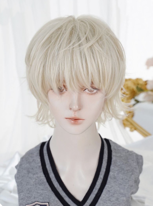 Ouji Fashion Youthful Feeling Handsome Prince Style Fluffy Light Blonde Short Hair Mullet Head Wig