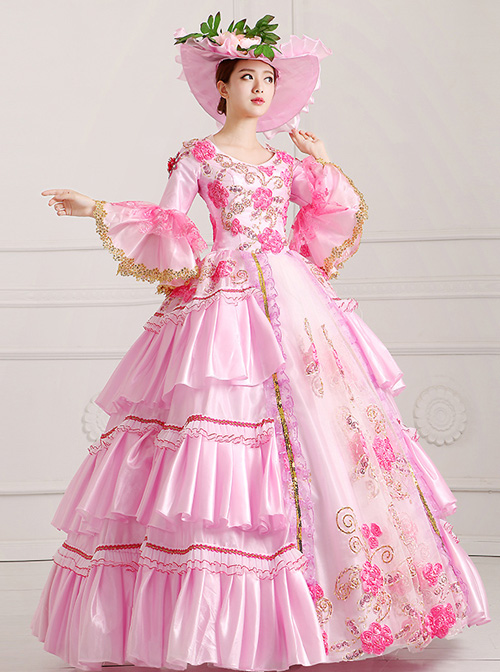 Palace Style Pink Flower Embroidery Lolita Prom Dress
