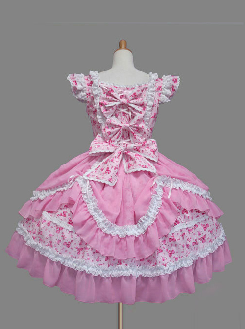 Pink Cotton Sweet Lolita Flying Sleeve Dress