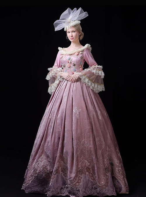 Pink Crew Neckline European Style Sweet Rococo Palace 3D Flowers Performance Costume Host Classic Prom Lolita Dress