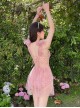 Pink Polka Dot Net Yarn Translucent Fishbone Slim Sexy Backless Sleeveless One-Piece Swimsuit