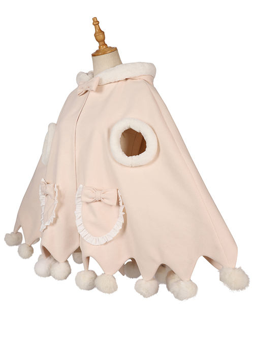 Plush Ball Cute Coat Winter Thickening Plus Velvet Sweet Lolita Cloak