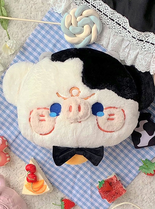 Plush Embroidery Wronged Little Cow Bowknot Bell Versatile Sweet Lolita Messenger Shoulder Bag