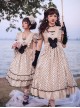 Polka Dot Lace High Waist Sweet Lolita Coconut Milk Bobo Backless JSK Detachable Bow Drop Shoulder Short Sleeve Long Dress Set