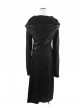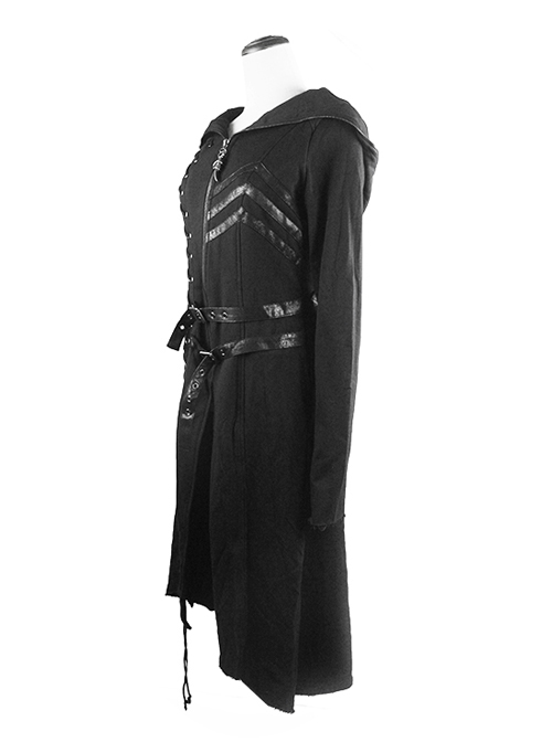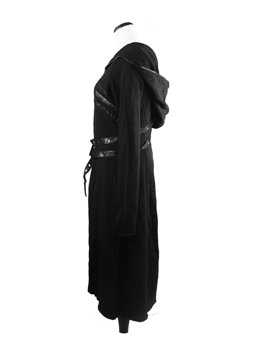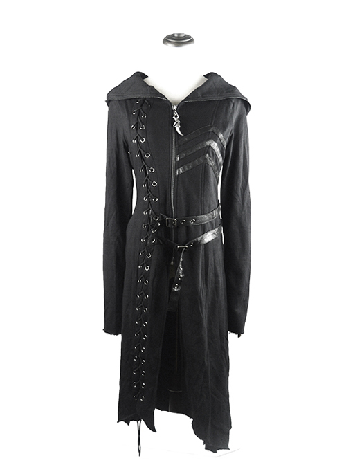 Punk Dark Asymmetric Hem Hooded Long Woolen Coat