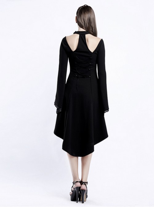 Punk Gothic Flare Sleeve Knitted Halterneck Black Medium Length Dress