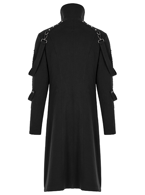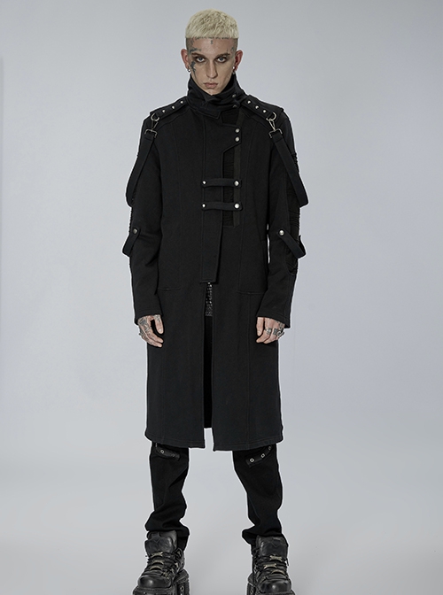 Punk Style Asymmetric High Collar Handsome Metal Rivet Sleeve Side Ring Decoration Black Long Sleeves Coat
