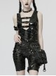 Punk Style Chest Sexy Hollow Cool Motorcycle Buckle Unique Ghost Face Zipper Black Patent Leather Slim Vest