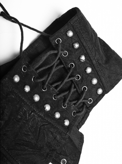 Punk Style Cool Silver Metal Studs Cross Straps Skull Decoration Fishbone Support Black Tight Girdle