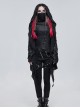 Punk Style Distressed Knitted Back Cross Mesh Stitching Shoulder Metal Five Pointed Star Black Hooded Coat