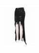 Punk Style Elastic Twill Hole Mesh Short Front And Long Back Black Waist Hip Skirt