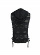 Punk Style Personality Elastic Hole Fabric Waist Side Eyelet Lace Up Decoration Black Daily Hooded Sleeveless T-Shirt
