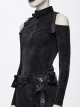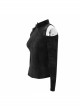 Punk Style Personality Elastic Knit Irregular Floral Pattern Shoulder Hollow Buckle Decoration Black Long Sleeved Coat