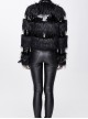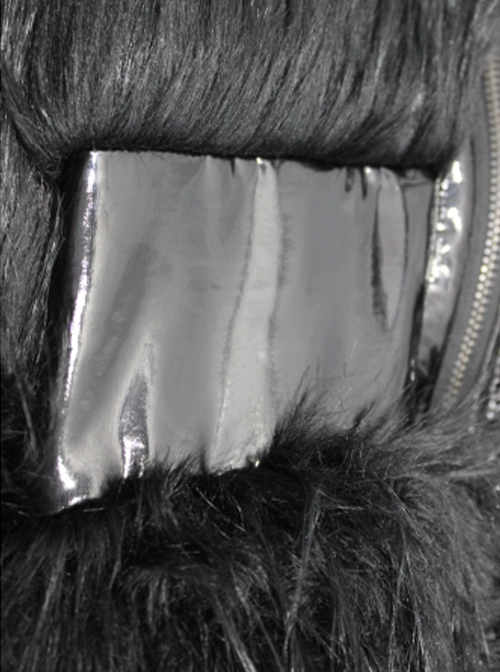 Punk Style Personality Long Wool Stitching Patent Leather Lining Warm Filling Cotton Black Stand Collar Long Sleeve Coat