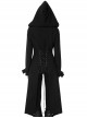 Punk Style Rebellious Leather Drawstring Metal Spike Zip Asymmetric Black Long Sleeves Hooded Long Coat