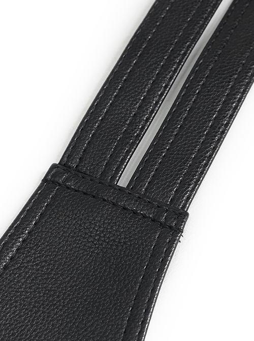 The whole piece is made of leather, with metal decoration, the shoulders and waist loops size can be adjusted, and the snap-button metal accessories at the crotch can be opened.