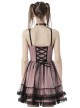 Punk Style Sexy Black Mesh Lace Cross Strap Decorated Sweet Pink Suspender Dress