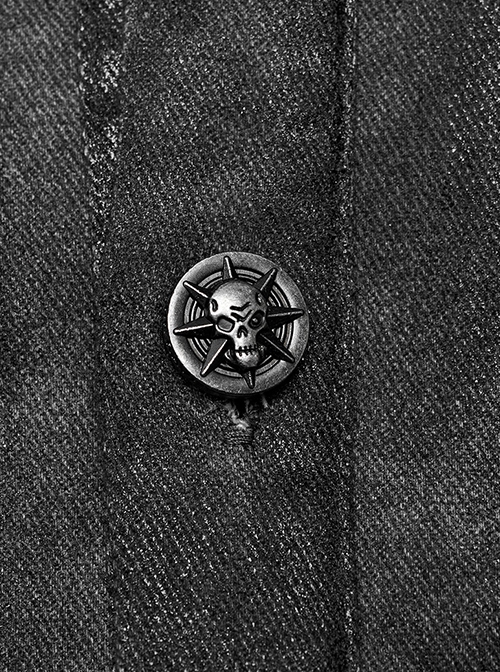 Punk Style Stand Collar Old Effect Fabric Mesh Splicing Personality Skull Button Cool Black Grey Male Vest
