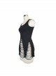 Punk Style Stretch Knit With Ripped Hem Black Backless Sleeveless T-Shirt