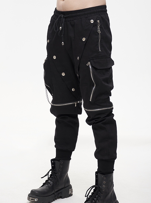 Punk Style Two Wear Wear Front Center Skull Metal Chain Decoration Men's Black Pants