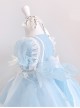 Pure Color Court Style Puff Sleeve Lace Stars Sweet Lolita Kids Short-Sleeved Dress