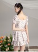 Purple Floral Conservative Lantern Sleeve Cute Girl Short-Sleeved One-Piece Swimsuit