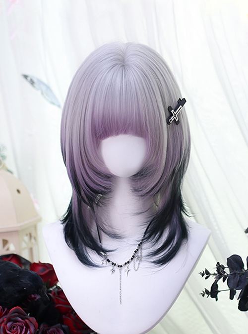 Purple Glass Series Y2K Fashion Jellyfish Head Short Hair Sweet Lolita Black Purple Gradient Wig