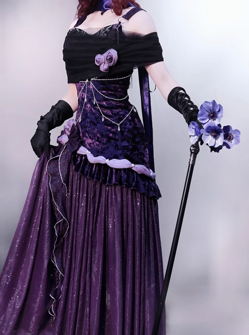 Purple Night Star River Series Dreamy Sexy Elegant Dark Purple Classic Lolita Sleeveless Slim Fit Fishtail Dress Set