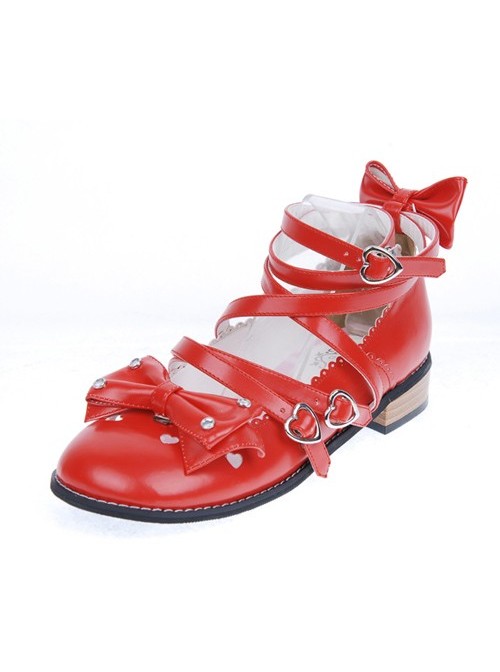 Red 1.0" Heel High Cute Suede Round Toe Bow Platform Girls Lolita Shoes