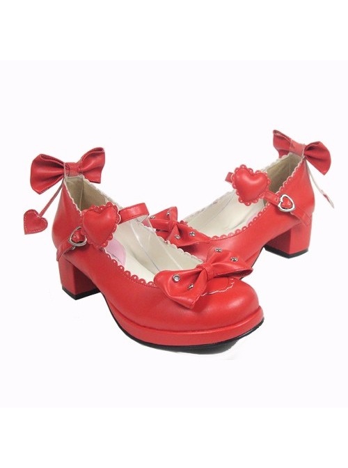 Red 1.8" Heel High Cute PU Point Toe Bowknot Platform Girls Lolita Shoes