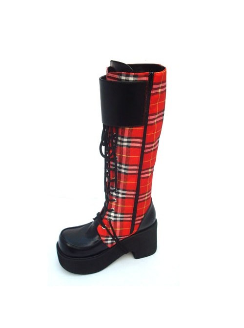Red 3.5" Heel High Sexy Suede Round Toe Cross Straps Platform Girls Lolita Boots