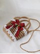 Retro Country Style Classic Lolita Red Berry Bowknot Lace Crossbody Straw Bag