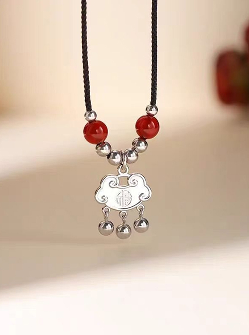 Retro Electroplated Alloy Trendy Kawaii Fashion Chinese Style Auspicious Meaning Longevity Lock Necklace